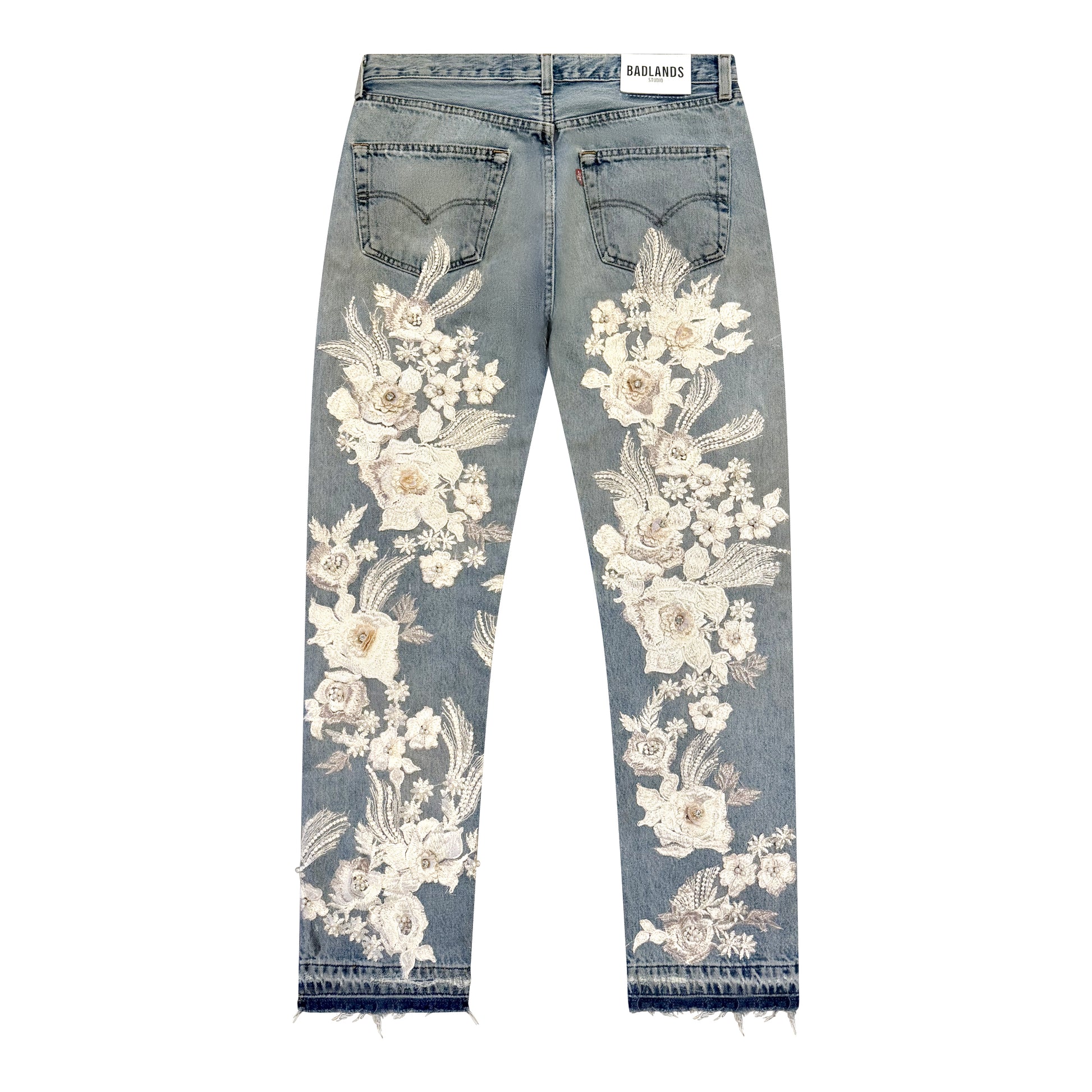 Each one is deconstructed, reshaped, and refined by our in house tailor into a modern straight silhouette.